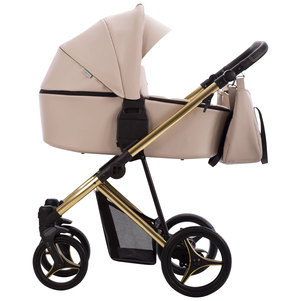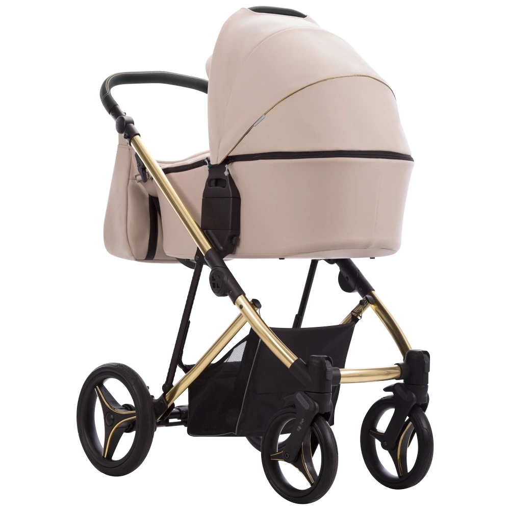 Bebetto Flavio Premium Class 2w1 w wersji głębokiej posiada jedną z najlżejszych gondoli wśród wózków w swojej klasie. Do wykonania gondoli zastosowano bardzo lekkie tworzywo EPP. Pomimo swojej niewielkiej wagi jest mocne i wodoodporne, a jego dodatkową zaletą jest to, że podlega recyklingowi oraz doskonale izoluje termicznie. Dzięki możliwości składania gondoli, jej przewożenie nie stanowi żadnego problemu. Gondola jest obszerna i wygodna, Maluch w środku ma w pełni komfortowe warunki, bezpieczne dla jego zdrowia. Przewiewne, oddychające tkaniny oraz wentylacja zapewniają cyrkulację powietrza wewnątrz wózka, oraz nie dopuszczają do tego, żeby dziecku było za gorąco, zwłaszcza w upalne dni. Gondolę Bebetto Flavio Premium Class 2w1 można zamontować na dwóch poziomach, co ułatwia dostosowanie wózka do swojego wzrostu. Wypinanie i wpinanie gondoli jest niezwykle proste – możesz to zrobić na dwa sposoby: albo poprzez zwolnienie blokady w stelażu, albo naciskając przyciski luzujące w gondoli.