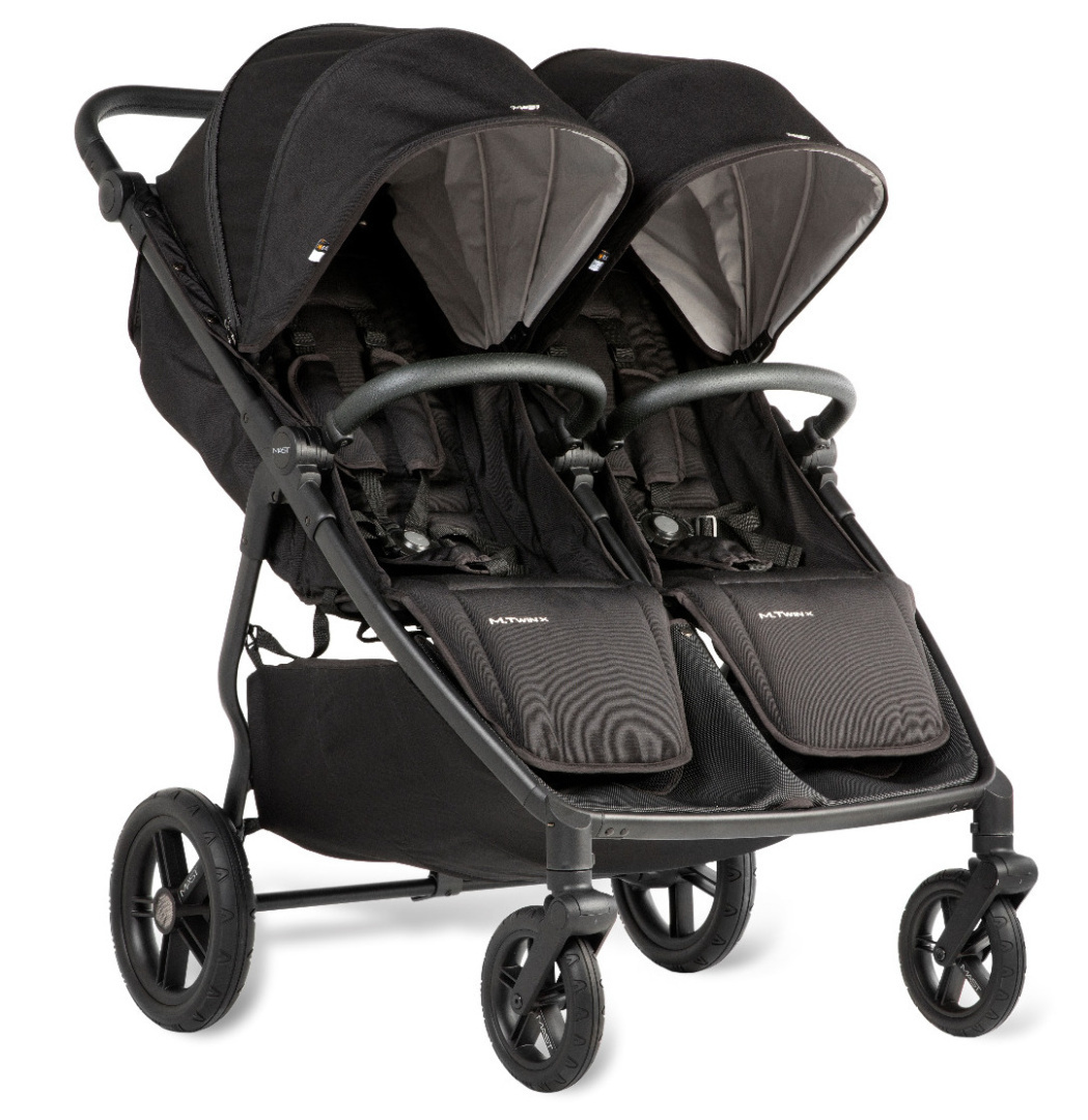 Mast M.Twin X HP to nowa propozycja doskonałego wózka dla bliźniaków! To wózek oparty na bardzo lekkiej ramie, który składa się do wyjątkowo kompaktowych rozmiarów. To wyjątkowo praktyczny wózek zarówno do miasta, jak i do jazdy w trudniejszym terenie. Mast Swiss Design M.Twin X posiada dwa szerokie i niezależnie regulowane od siebie siedziska spacerowe, które zapewnią dzieciom wyjątkowy komfort w czasie spacerów. Wózek spacerowy dla bliźniaków Mast M.Twin X przeznaczony jest dla dzieci do 25 kg (na każde siedzisko).