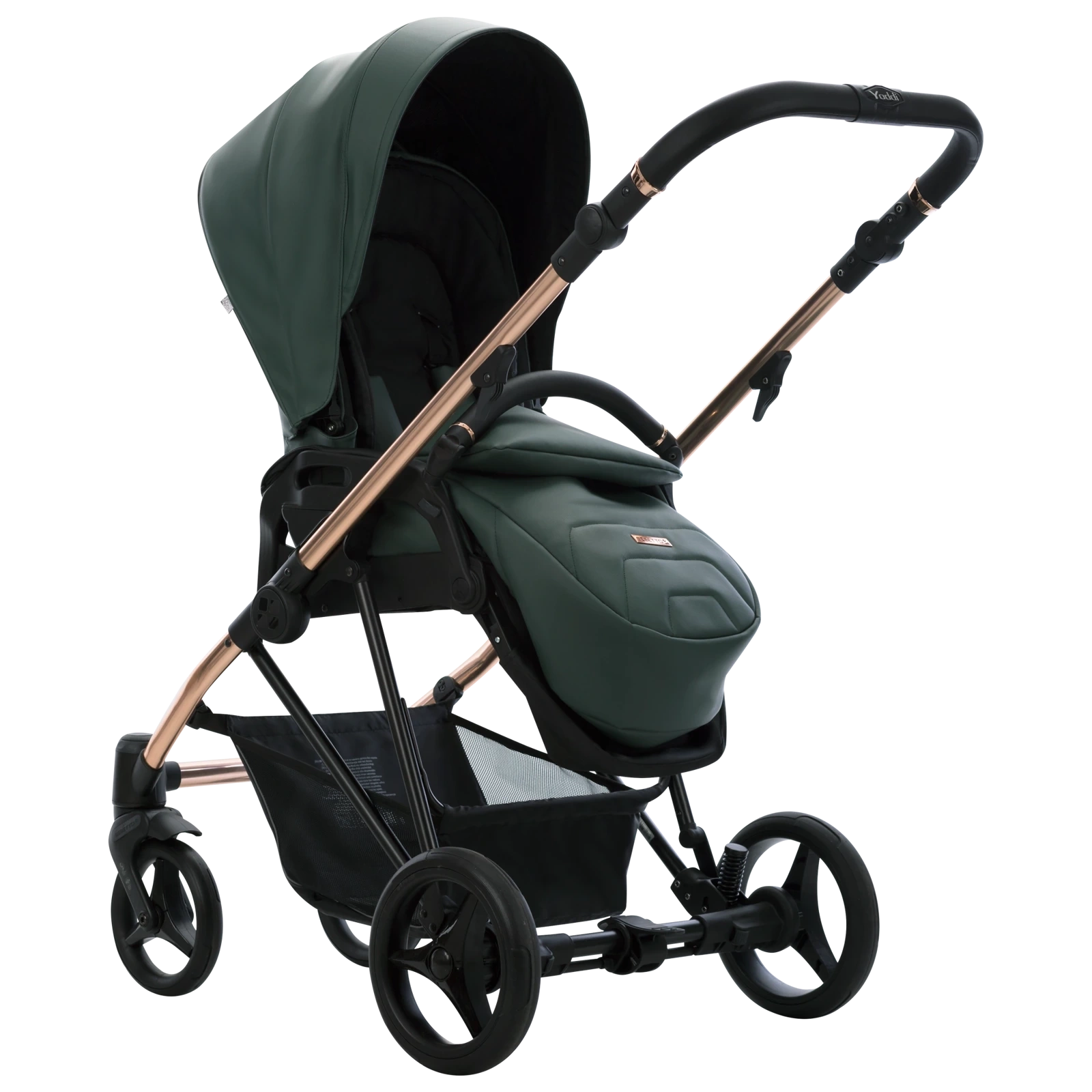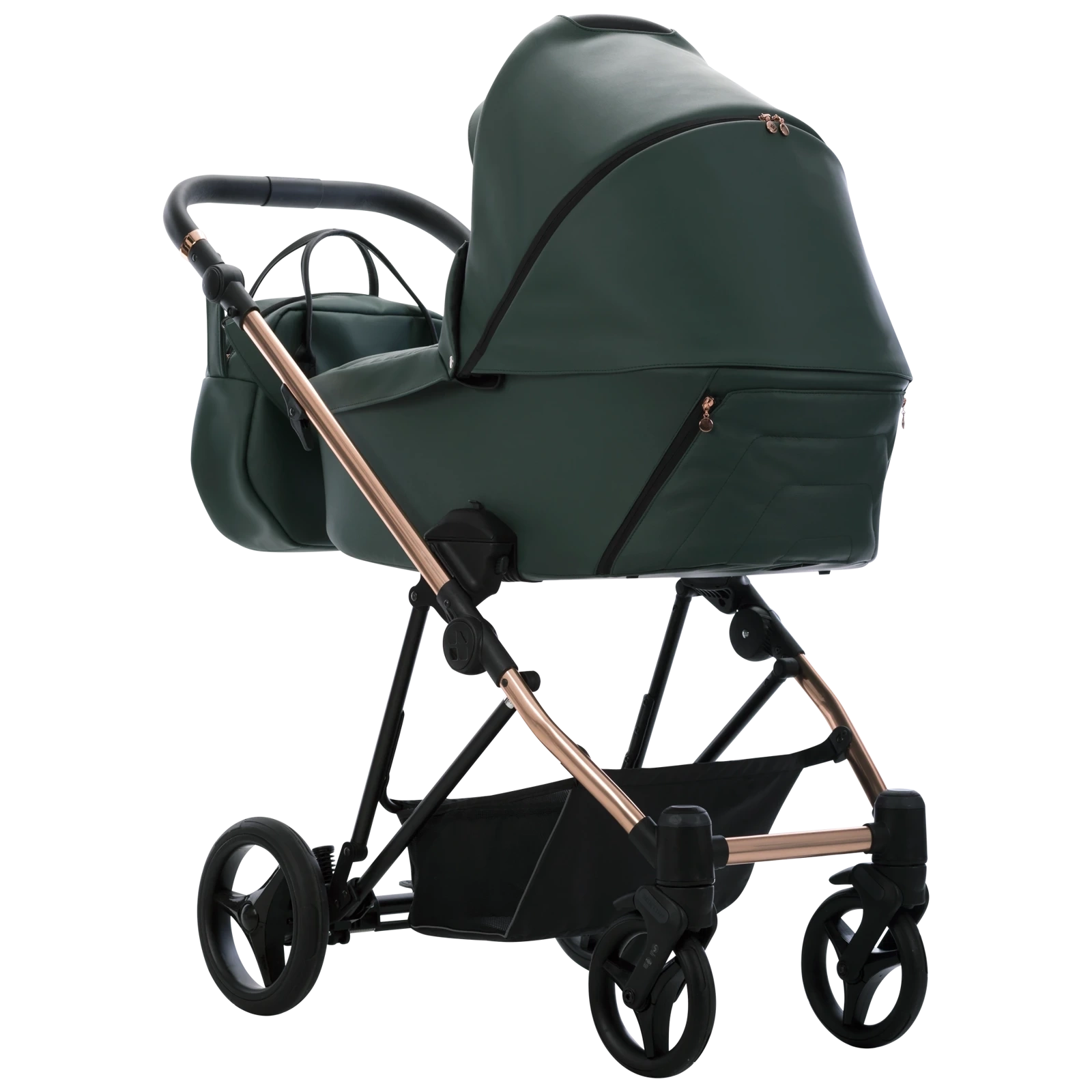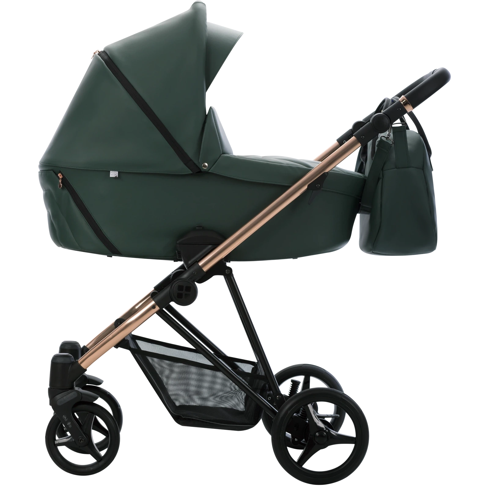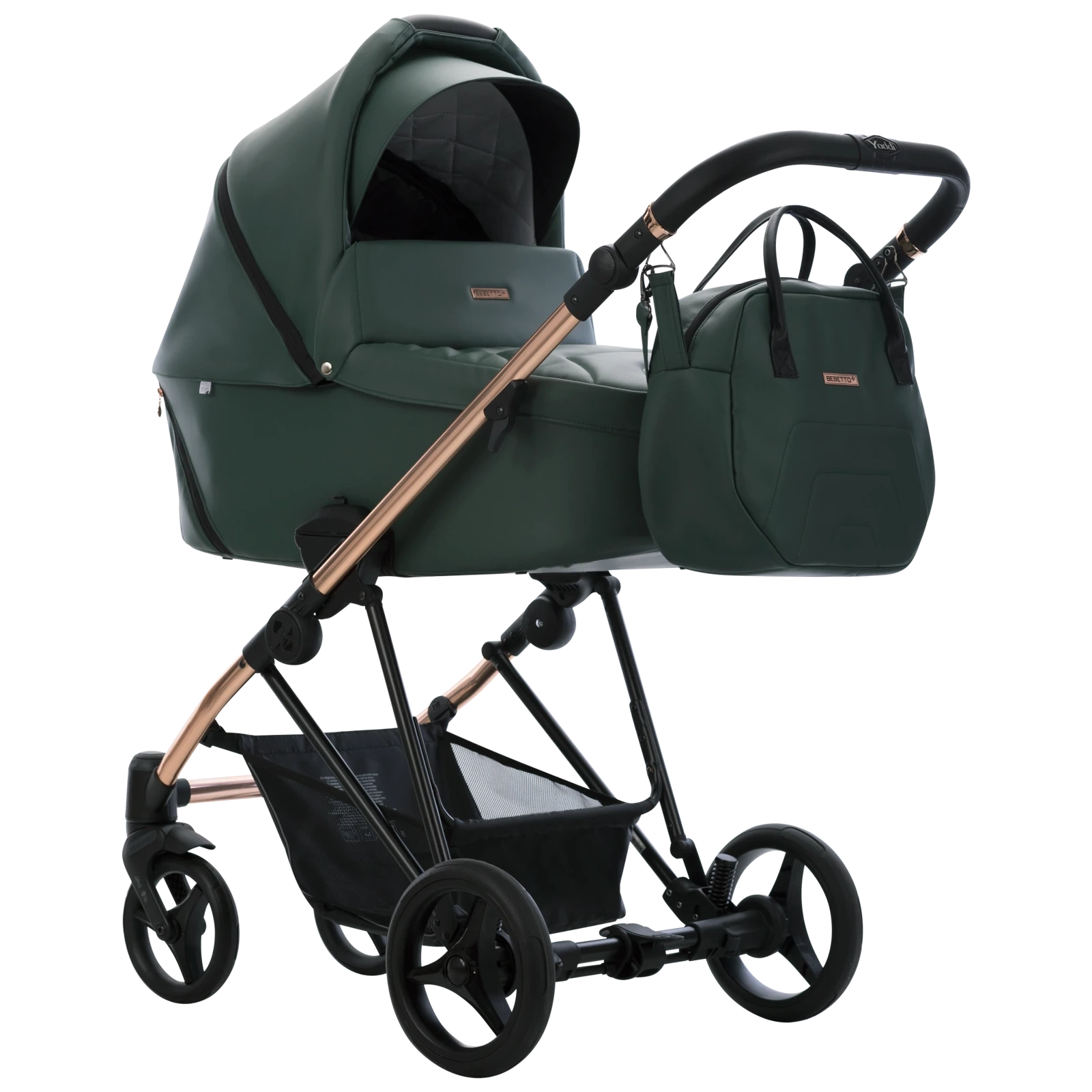W wersji Premium Class Yoddi występuje w dwóch wersjach z tapicerką z eko-skóry – w kolorze beżowym lub czarnym. Rama wózka ma połyskliwy miedziany kolor, który doskonale koresponduje ze stonowanymi kolorami tapicerki. Miedziane pierścienie przy rączce i barierce nadają wózkowi nietuzinkowego stylu.