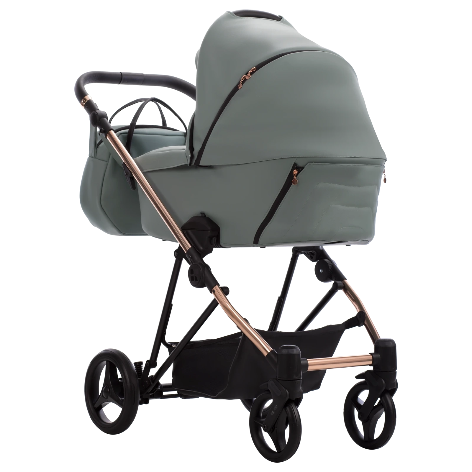 W wersji Premium Class Yoddi występuje w dwóch wersjach z tapicerką z eko-skóry – w kolorze beżowym lub czarnym. Rama wózka ma połyskliwy miedziany kolor, który doskonale koresponduje ze stonowanymi kolorami tapicerki. Miedziane pierścienie przy rączce i barierce nadają wózkowi nietuzinkowego stylu.