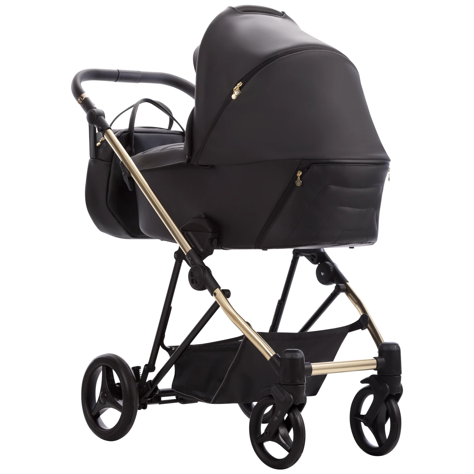 W wersji Premium Class Yoddi występuje w dwóch wersjach z tapicerką z eko-skóry – w kolorze beżowym lub czarnym. Rama wózka ma połyskliwy miedziany kolor, który doskonale koresponduje ze stonowanymi kolorami tapicerki. Miedziane pierścienie przy rączce i barierce nadają wózkowi nietuzinkowego stylu.