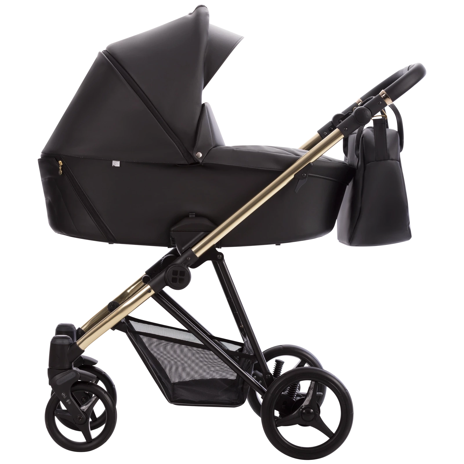 Wózek wielofunkcyjny Bebetto Yoddi Premium Class 2w1 wyposażony jest w praktyczne akcesoria: dużą torbę pielęgnacyjną, folię przeciwdeszczową, moskitierę oraz uchwyt na kubek.