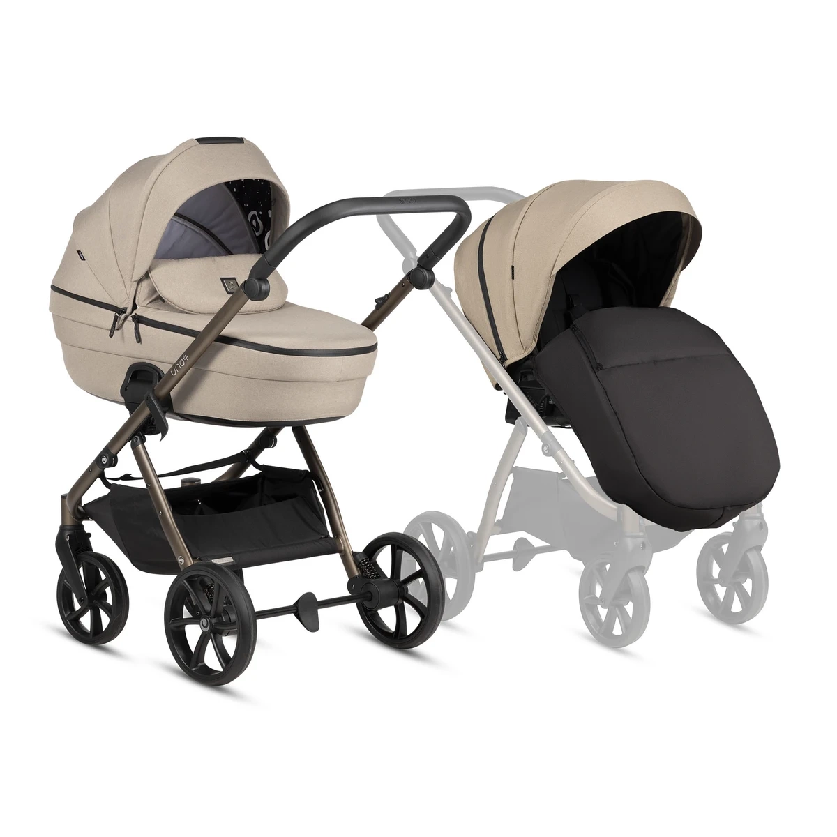 Wersja spacerowa wózka została zaprojektowana tak, by towarzyszyć dziecku aż do osiągnięcia 22 kg. Oferuje pełne, leżące siedzisko o wymiarach 99 × 37 cm, wentylowaną budkę, nowy system 5-punktowych pasów z bezproblemową regulacją, a także intuicyjną, jednoręczną regulację podnóżka. Siedzisko można składać w obu kierunkach jazdy, zachowując kompaktowe rozmiary, co znacząco ułatwia codzienny transport i przechowywanie. W zestawie znajduje się kompletne wyposażenie: gondola, spacerówka, barierka ochronna, stelaż, kosz zakupowy, oba pokrowce, materacyk, folia przeciwdeszczowa oraz moskitiera – wszystko, co rodzice potrzebują od pierwszego spaceru aż po kolejne lata aktywnego użytkowania. Tutis Uno6+ to propozycja dla tych, którzy chcą wyróżniać się stylem, a jednocześnie oczekują wysokiej funkcjonalności i mobilności – wózek, który pozwala spacerować nie tylko wygodnie, ale i z odwagą.