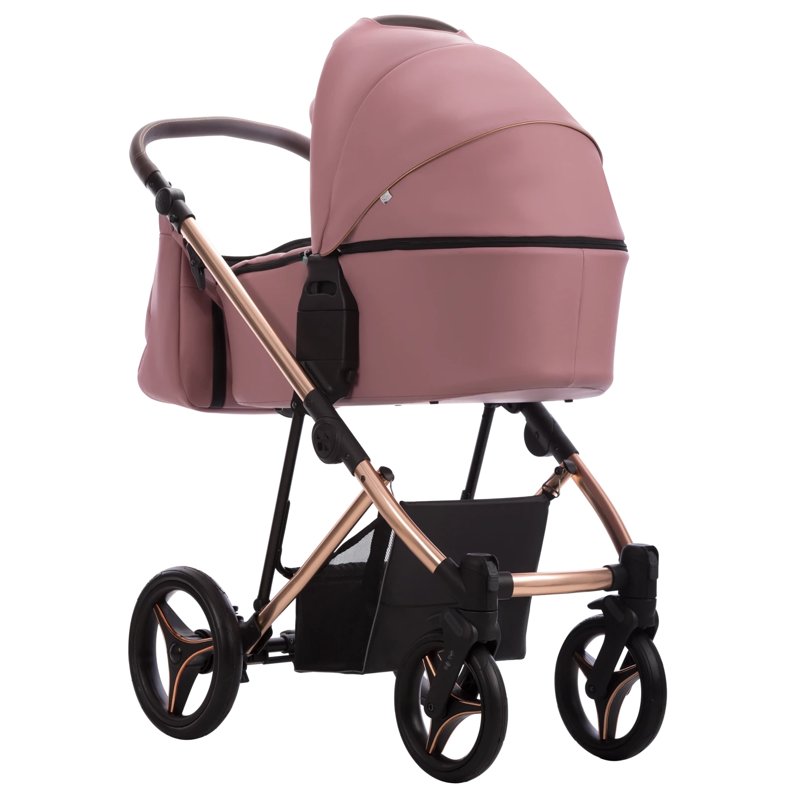 Bebetto Flavio Premium Class 2w1 w wersji głębokiej posiada jedną z najlżejszych gondoli wśród wózków w swojej klasie. Do wykonania gondoli zastosowano bardzo lekkie tworzywo EPP. Pomimo swojej niewielkiej wagi jest mocne i wodoodporne, a jego dodatkową zaletą jest to, że podlega recyklingowi oraz doskonale izoluje termicznie. Dzięki możliwości składania gondoli, jej przewożenie nie stanowi żadnego problemu. Gondola jest obszerna i wygodna, Maluch w środku ma w pełni komfortowe warunki, bezpieczne dla jego zdrowia. Przewiewne, oddychające tkaniny oraz wentylacja zapewniają cyrkulację powietrza wewnątrz wózka, oraz nie dopuszczają do tego, żeby dziecku było za gorąco, zwłaszcza w upalne dni. Gondolę Bebetto Flavio Premium Class 2w1 można zamontować na dwóch poziomach, co ułatwia dostosowanie wózka do swojego wzrostu. Wypinanie i wpinanie gondoli jest niezwykle proste – możesz to zrobić na dwa sposoby: albo poprzez zwolnienie blokady w stelażu, albo naciskając przyciski luzujące w gondoli.
