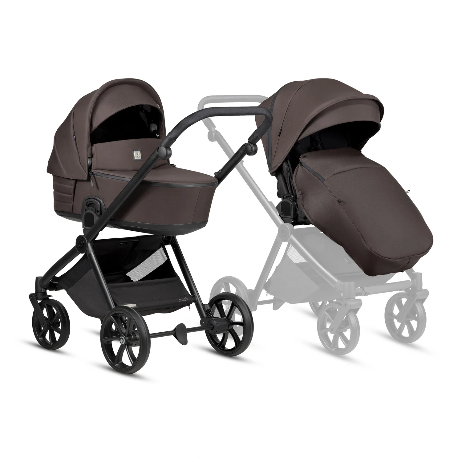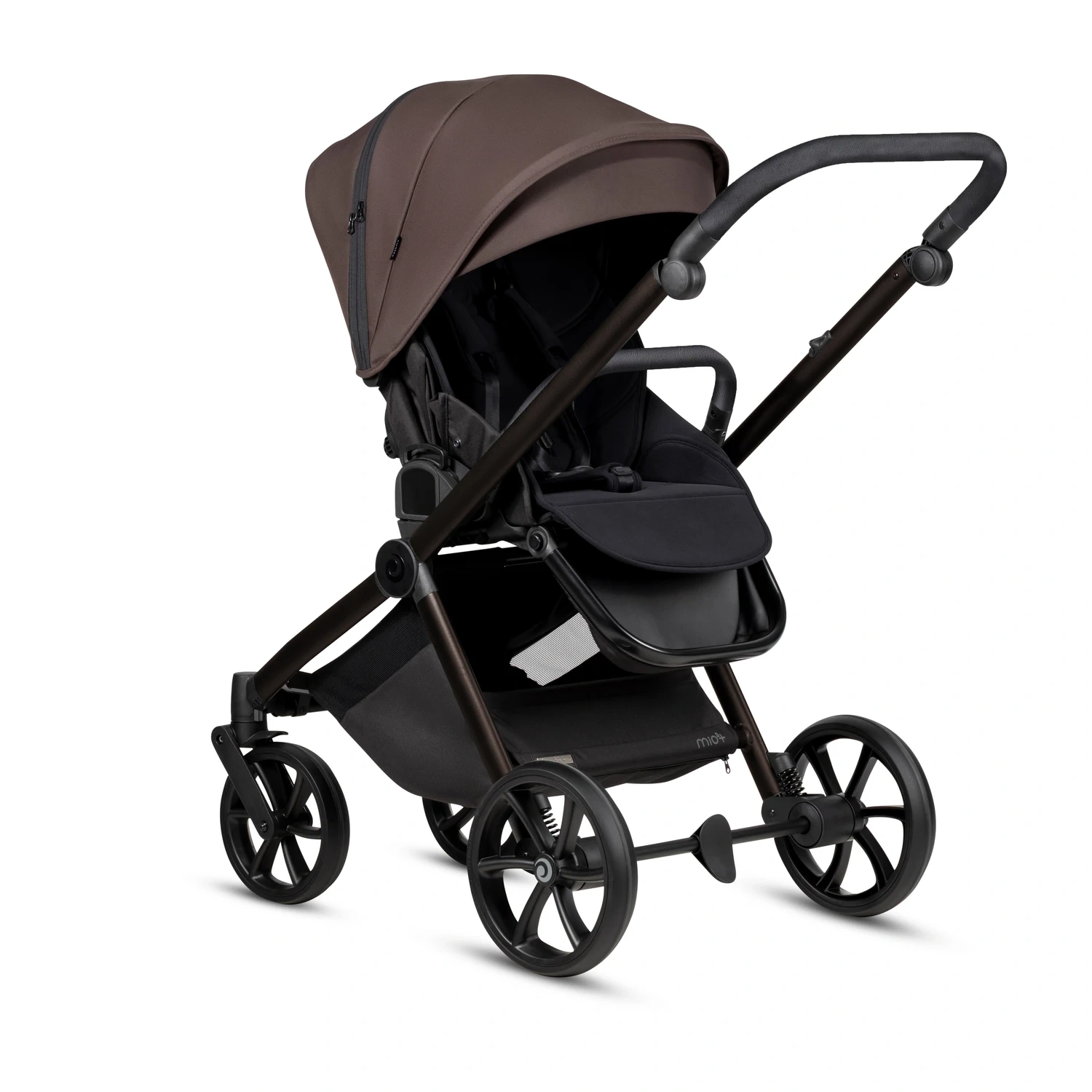 Tutis Mio 3+ został stworzony z myślą o wygodzie rodziców. Ergonomiczna rączka z eco-skóry posiada aż 11 poziomów regulacji wysokości, dzięki czemu wózek komfortowo prowadzą zarówno osoby niskie, jak i wysokie. Kompaktowy system składania pozwala złożyć wózek razem z siedziskiem – niezależnie od kierunku jego montażu – co znacząco ułatwia transport i przechowywanie.