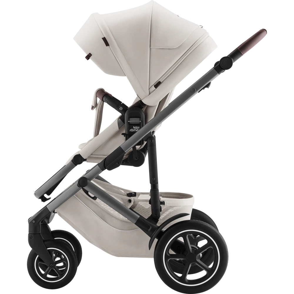 Wózek spacerowy Britax Romer Smile 5Z umożliwia regulację wysokości rączki, dzięki czemu bez trudu dopasujesz wózek odpowiednio do swojego wzrostu. Rączka obszyta jest wysokiej jakości skórą ekologiczną.