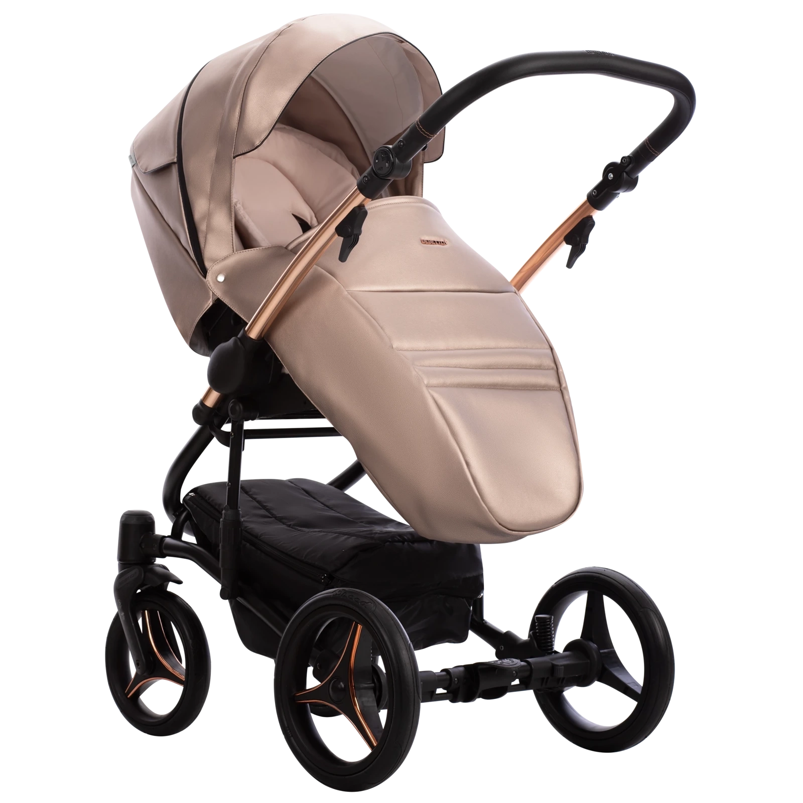 Odkryj wyjątkowe spojrzenie na klasyczny wózek dziecięcy Torino w nowej odsłonie – Bebetto Torino Pro. Przedstawiamy nową kolekcję, gdzie gondola oraz budka spacerówki są elegancko obszyte wysokiej jakości eko-skórą, nadając temu modelowi nowoczesny i stylowy charakter. Kolekcja Torino Pro wyróżnia się efektem lśniącej eko-skóry, dodatkowo podkreślonej złocistymi bizami i przeszyciami. To połączenie sprawia, że design wózka zachwyca swoją nowoczesnością i prezentuje się niezwykle stylowo. Pomimo tego awangardowego podejścia do wzornictwa, model ten oferuje pełną funkcjonalność znanej z podstawowej wersji Torino. Torino Pro wyposażony jest w doskonały system amortyzacji, który pozwoli Wam spacerować w każdych warunkach.