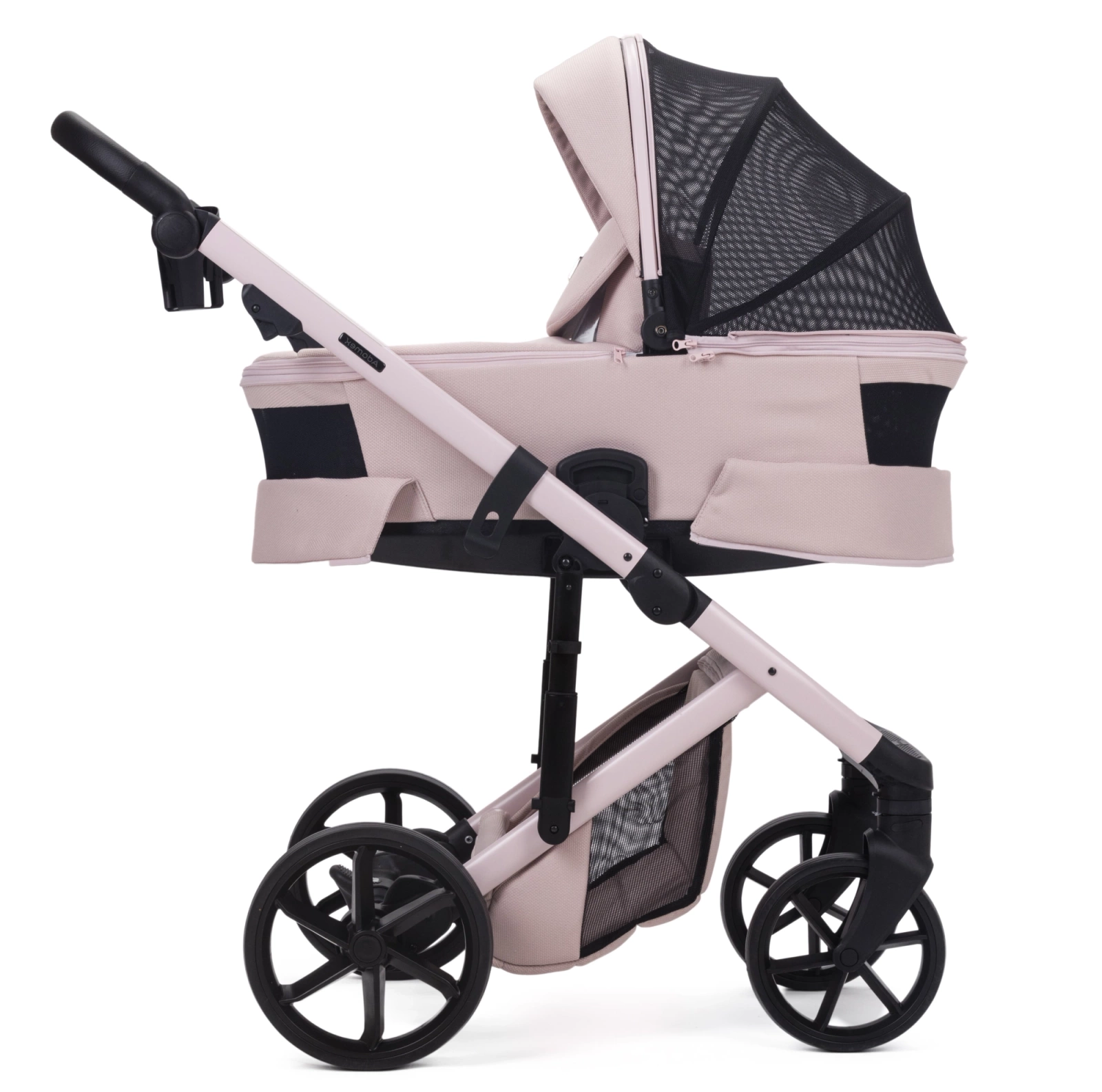 Kolekcja wyróżnia się precyzyjnie dobranym kolorem stelaża oraz dodatków, które idealnie współgrają z tkaniną zastosowaną w wózku. Subtelne, stonowane i eleganckie zestawienia kolorystyczne nawiązują do naturalnych odcieni ziemi i przyrody wokół nas. Przestronna gondola posiada nowoczesny mechanizm składania na płasko, co umożliwia szybkie i wygodne rozkładanie, gdy tylko tego potrzebujesz. Jest idealna szczególnie dla maluszków urodzonych w okresie wiosenno-letnim. Tkaninowa część budki gondoli jest w pełni zdejmowana, odsłaniając przewiewną moskitierę. Dwa dodatkowe otwory wentylacyjne (z przodu i z tyłu) zapewniają panoramiczną wentylację, którą można dostosować do aktualnych warunków. W zestawie znajduje się także blenda przeciwsłoneczna, doskonale chroniąca dziecko przed promieniami słońca.