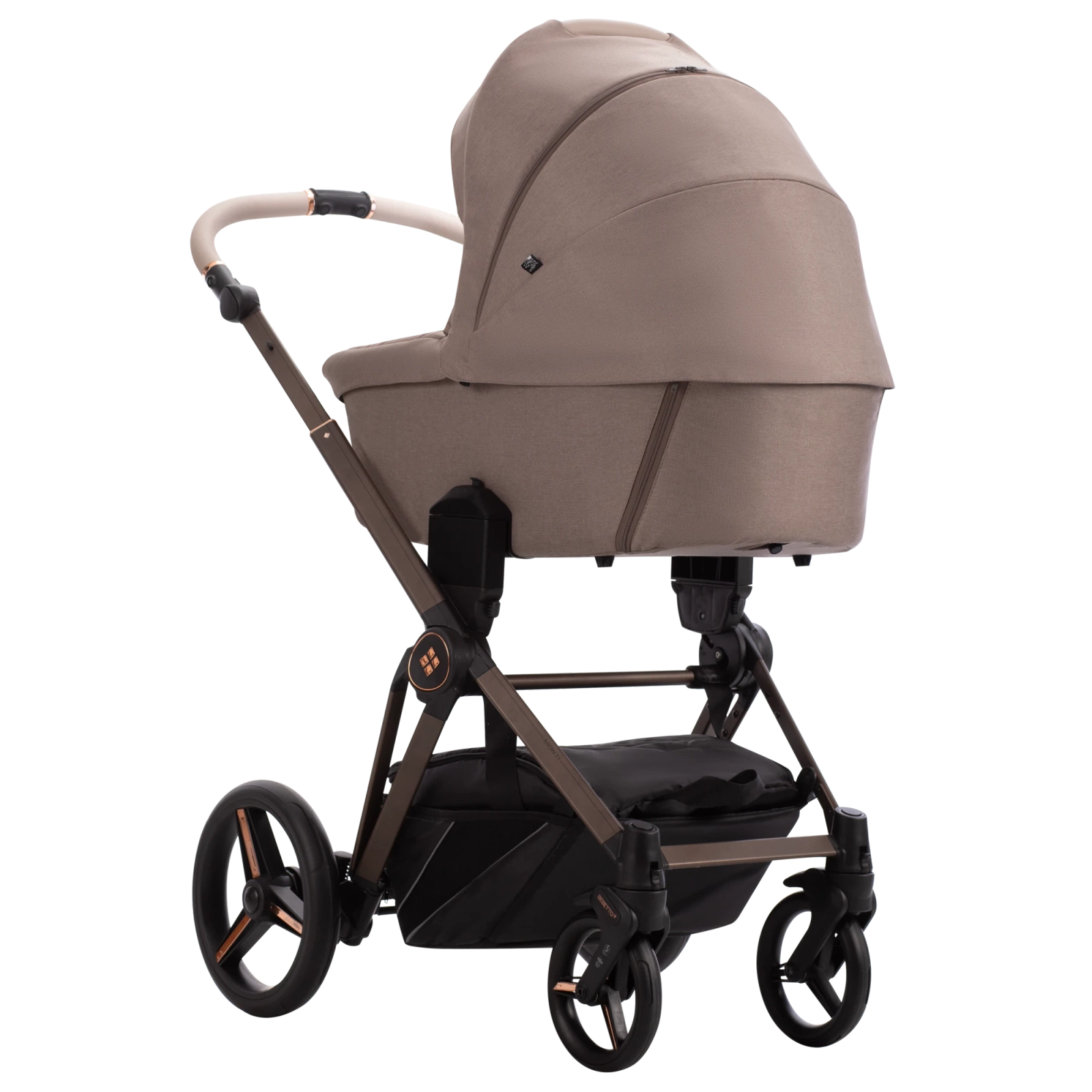 Monti w wersji głębokiej waży zaledwie 12 kg, co czyni go jednym z najlżejszych wózków w swojej klasie. Jego niewielka waga to wygoda na co dzień – zwłaszcza podczas przenoszenia, podnoszenia czy pakowania do samochodu. Dodatkowo gondolę można złożyć na płasko, co ułatwia przechowywanie i transport. System wentylacji wózka Monti to prawdziwa klasa premium. Siatki wentylacyjne umieszczono w dolnej części gondoli – zarówno przy nóżkach, jak i główce dziecka – oraz w budce. Tak rozbudowany system zapewnia doskonały przepływ powietrza, gwarantując komfort nawet w upalne dni. Codzienne spacery stają się jeszcze przyjemniejsze dzięki przemyślanym rozwiązaniom. Gruby materacyk zapewnia maksymalny komfort, a regulowany zagłówek można łatwo dostosować do potrzeb malucha. Obszerna budka z dodatkowym klinem skutecznie chroni przed słońcem i wiatrem, a dodatkowy panel w pokrowcu z okienkiem pozwala rodzicom mieć dziecko zawsze na oku. Dno gondoli wykonano z lekkiego i doskonale izolującego termicznie materiału EPP, który dodatkowo zwiększa wygodę użytkowania.