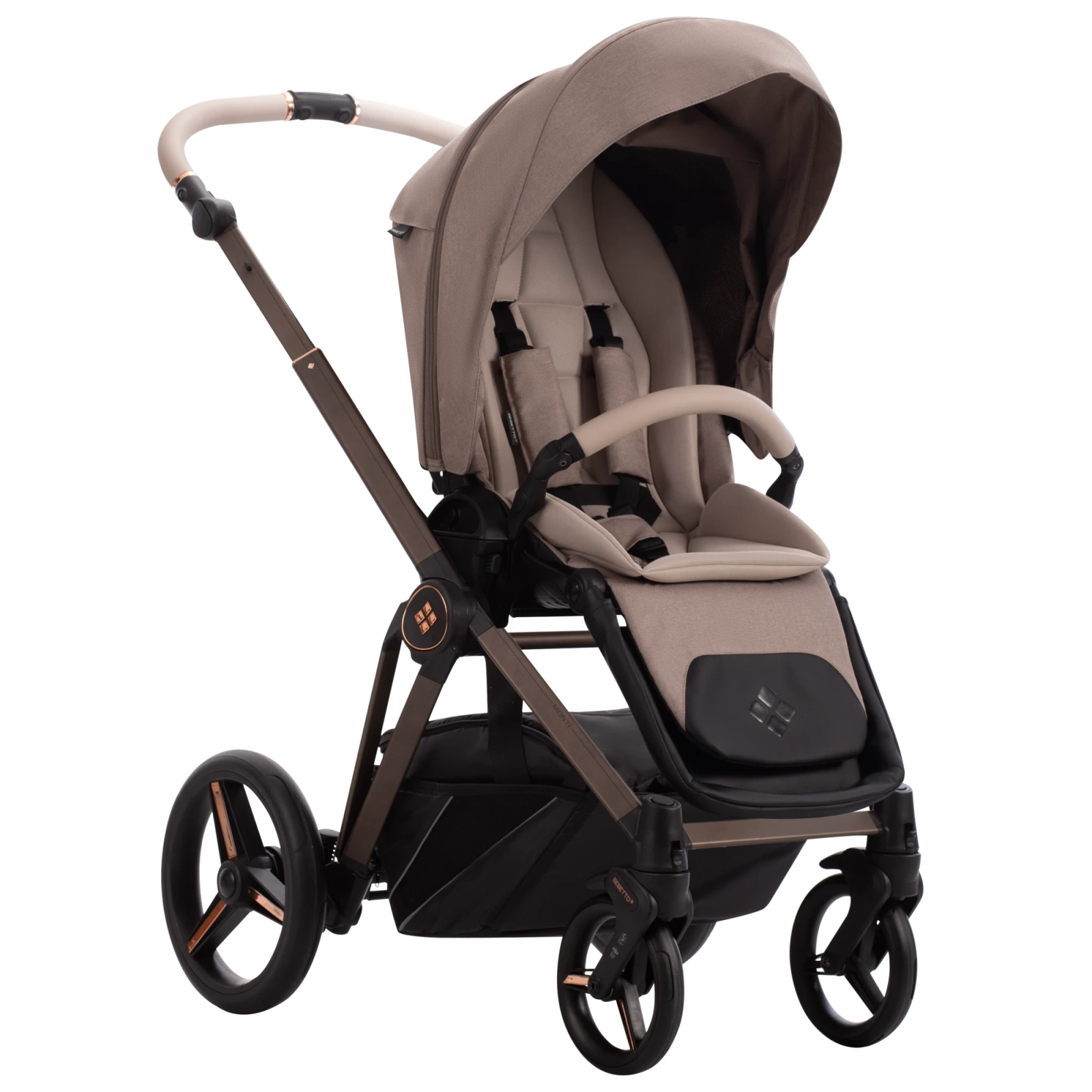 Monti łączy w sobie zalety lekkiej spacerówki z wszechstronnością wózka terenowego. Teleskopowa rączka, regulowana w dwóch płaszczyznach, zapewnia komfort użytkowania niezależnie od wzrostu rodzica. Dzięki bardzo dobrej amortyzacji wózek prowadzi się płynnie i lekko, a bezobsługowe koła – sprężyste i niewymagające pompowania – gwarantują wygodę na każdej nawierzchni. Przednie, mniejsze koła ułatwiają manewrowanie, a tylne zapewniają stabilność i amortyzację. Wózek Monti został wyposażony w liczne akcesoria, które ułatwiają codzienne użytkowanie. W zestawie znajduje się elegancka i pojemna torba pielęgnacyjna oraz dodatkowa torba na akcesoria w koszu pod wózkiem – idealna do przechowywania zakupów czy drobiazgów. W komplecie znajdują się także folia przeciwdeszczowa, moskitiera, uchwyt na kubek oraz niezwykle praktyczny uchwyt na telefon, który można zawiesić na boku rączki. Monti to wózek, który spełnia najwyższe standardy komfortu i bezpieczeństwa, a przy tym zachwyca designem i przemyślanymi rozwiązaniami. Niezależnie od tego, czy spacerujesz po mieście, czy pokonujesz nierówne ścieżki – Monti sprawdzi się doskonale w każdej sytuacji!
