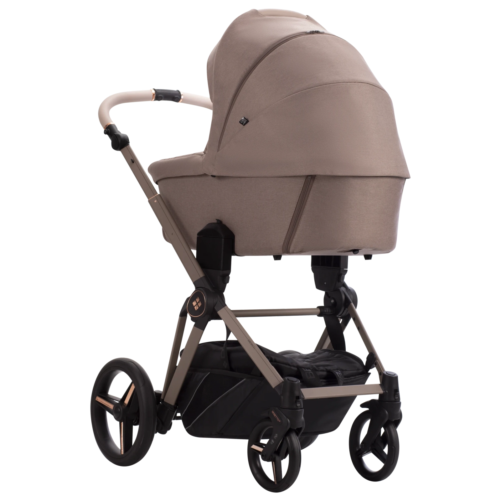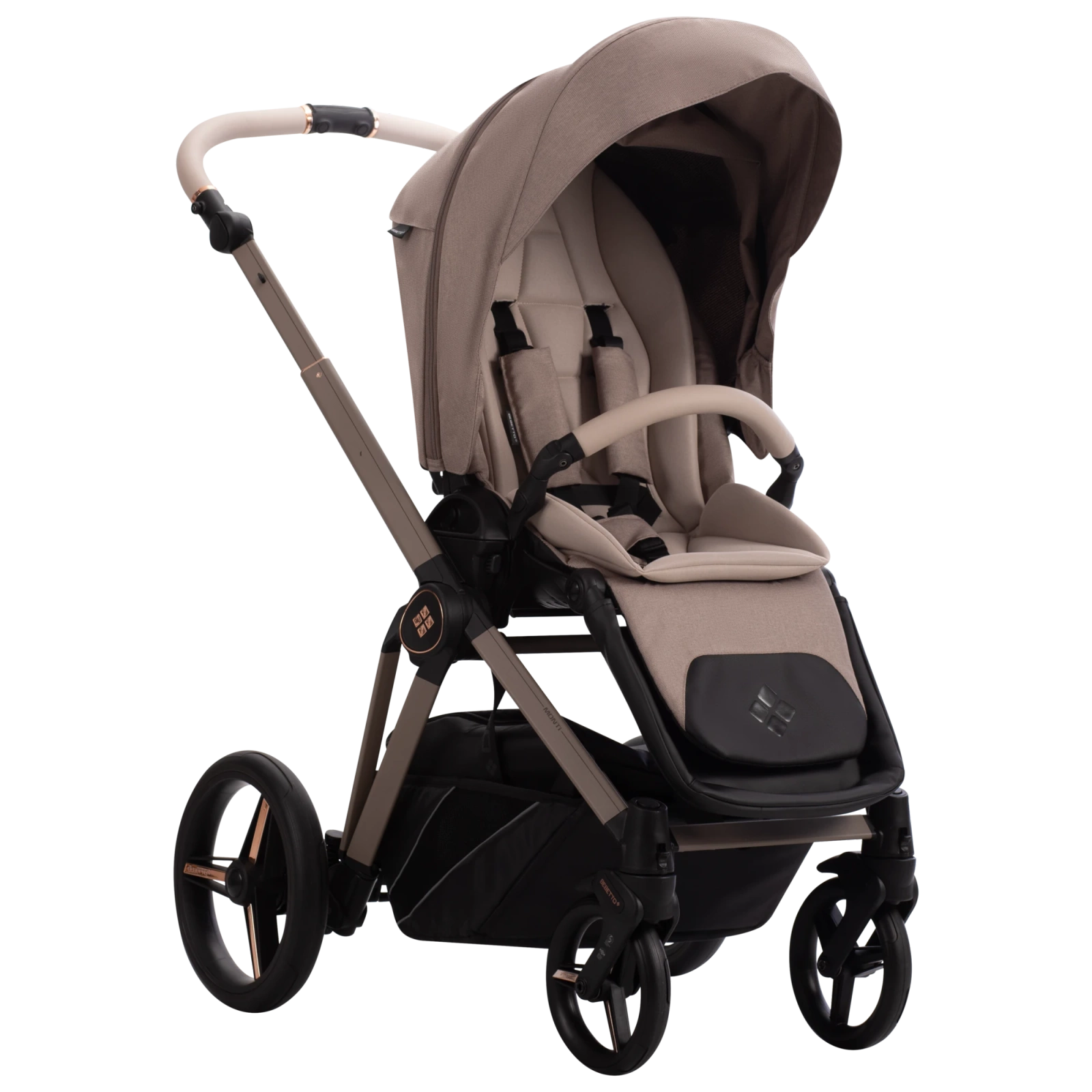 Monti łączy w sobie zalety lekkiej spacerówki z wszechstronnością wózka terenowego. Teleskopowa rączka, regulowana w dwóch płaszczyznach, zapewnia komfort użytkowania niezależnie od wzrostu rodzica. Dzięki bardzo dobrej amortyzacji wózek prowadzi się płynnie i lekko, a bezobsługowe koła – sprężyste i niewymagające pompowania – gwarantują wygodę na każdej nawierzchni. Przednie, mniejsze koła ułatwiają manewrowanie, a tylne zapewniają stabilność i amortyzację. Wózek Monti został wyposażony w liczne akcesoria, które ułatwiają codzienne użytkowanie. W zestawie znajduje się elegancka i pojemna torba pielęgnacyjna oraz dodatkowa torba na akcesoria w koszu pod wózkiem – idealna do przechowywania zakupów czy drobiazgów. W komplecie znajdują się także folia przeciwdeszczowa, moskitiera, uchwyt na kubek oraz niezwykle praktyczny uchwyt na telefon, który można zawiesić na boku rączki. Monti to wózek, który spełnia najwyższe standardy komfortu i bezpieczeństwa, a przy tym zachwyca designem i przemyślanymi rozwiązaniami. Niezależnie od tego, czy spacerujesz po mieście, czy pokonujesz nierówne ścieżki – Monti sprawdzi się doskonale w każdej sytuacji!