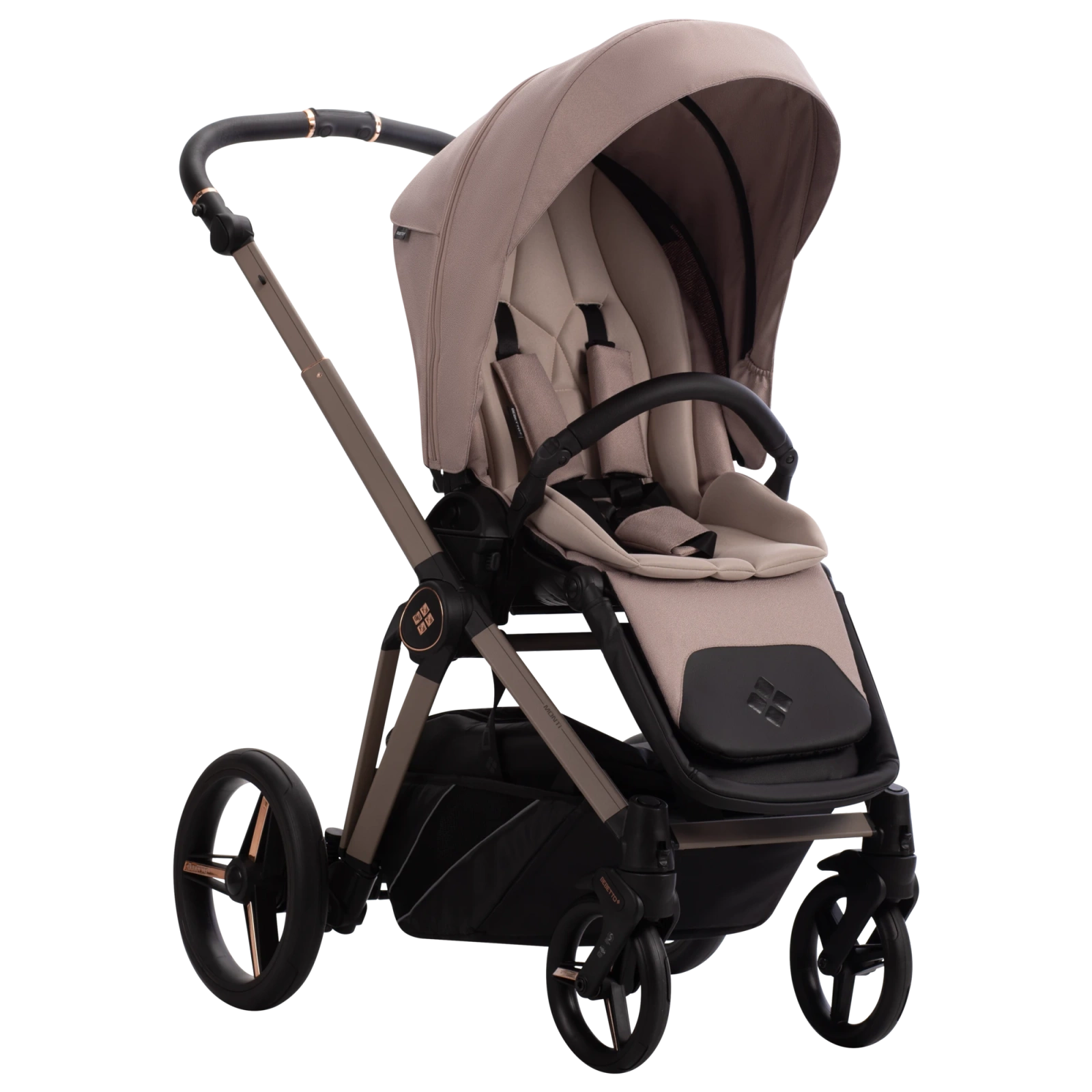 Monti łączy w sobie zalety lekkiej spacerówki z wszechstronnością wózka terenowego. Teleskopowa rączka, regulowana w dwóch płaszczyznach, zapewnia komfort użytkowania niezależnie od wzrostu rodzica. Dzięki bardzo dobrej amortyzacji wózek prowadzi się płynnie i lekko, a bezobsługowe koła – sprężyste i niewymagające pompowania – gwarantują wygodę na każdej nawierzchni. Przednie, mniejsze koła ułatwiają manewrowanie, a tylne zapewniają stabilność i amortyzację. Wózek Monti został wyposażony w liczne akcesoria, które ułatwiają codzienne użytkowanie. W zestawie znajduje się elegancka i pojemna torba pielęgnacyjna oraz dodatkowa torba na akcesoria w koszu pod wózkiem – idealna do przechowywania zakupów czy drobiazgów. W komplecie znajdują się także folia przeciwdeszczowa, moskitiera, uchwyt na kubek oraz niezwykle praktyczny uchwyt na telefon, który można zawiesić na boku rączki. Monti to wózek, który spełnia najwyższe standardy komfortu i bezpieczeństwa, a przy tym zachwyca designem i przemyślanymi rozwiązaniami. Niezależnie od tego, czy spacerujesz po mieście, czy pokonujesz nierówne ścieżki – Monti sprawdzi się doskonale w każdej sytuacji!
