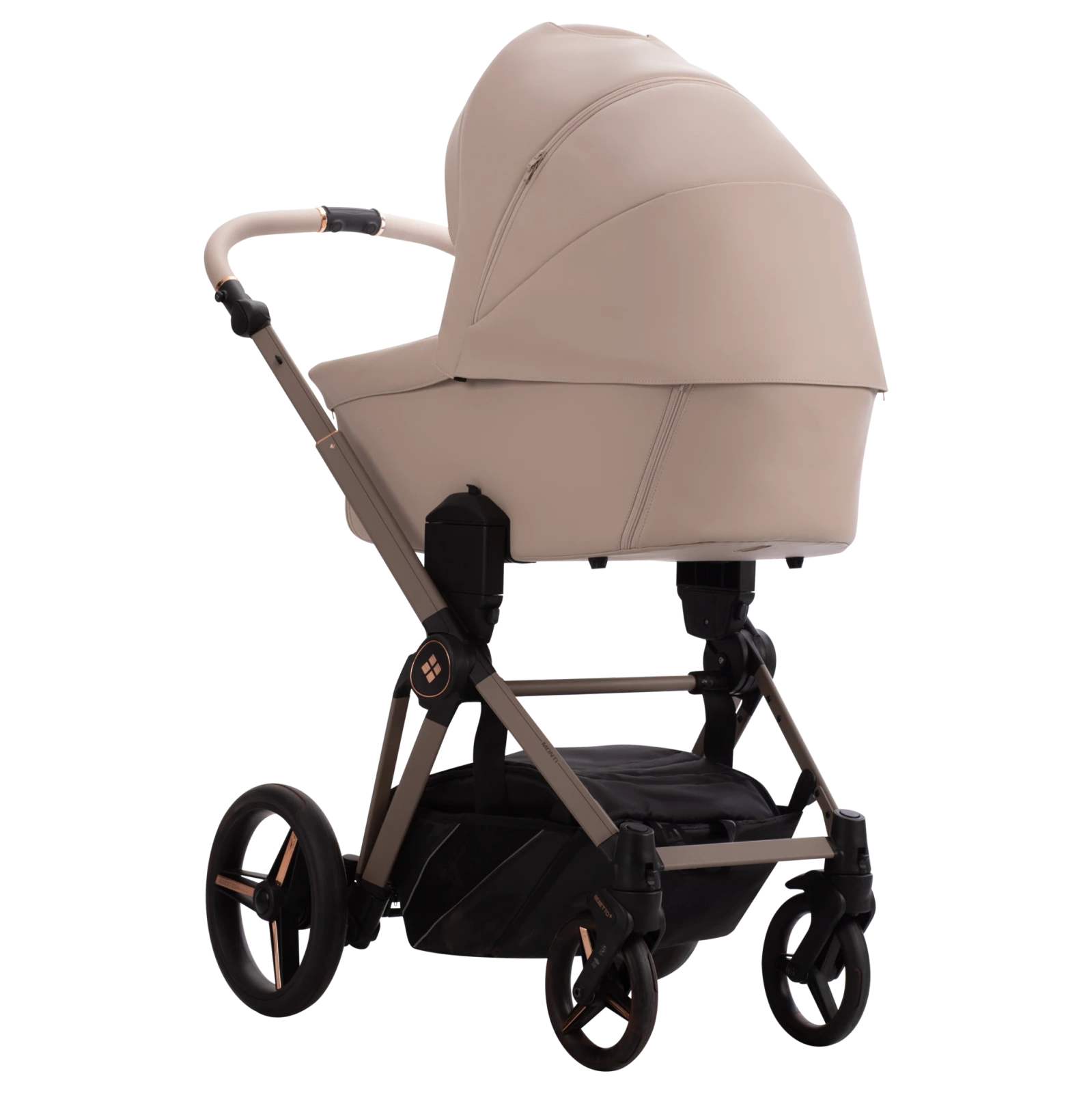 Monti łączy w sobie zalety lekkiej spacerówki z wszechstronnością wózka terenowego. Teleskopowa rączka, regulowana w dwóch płaszczyznach, zapewnia komfort użytkowania niezależnie od wzrostu rodzica. Dzięki bardzo dobrej amortyzacji wózek prowadzi się płynnie i lekko, a bezobsługowe koła – sprężyste i niewymagające pompowania – gwarantują wygodę na każdej nawierzchni. Przednie, mniejsze koła ułatwiają manewrowanie, a tylne zapewniają stabilność i amortyzację. Wózek Monti został wyposażony w liczne akcesoria, które ułatwiają codzienne użytkowanie. W zestawie znajduje się elegancka i pojemna torba pielęgnacyjna oraz dodatkowa torba na akcesoria w koszu pod wózkiem – idealna do przechowywania zakupów czy drobiazgów. W komplecie znajdują się także folia przeciwdeszczowa, moskitiera, uchwyt na kubek oraz niezwykle praktyczny uchwyt na telefon, który można zawiesić na boku rączki. Monti to wózek, który spełnia najwyższe standardy komfortu i bezpieczeństwa, a przy tym zachwyca designem i przemyślanymi rozwiązaniami. Niezależnie od tego, czy spacerujesz po mieście, czy pokonujesz nierówne ścieżki – Monti sprawdzi się doskonale w każdej sytuacji!