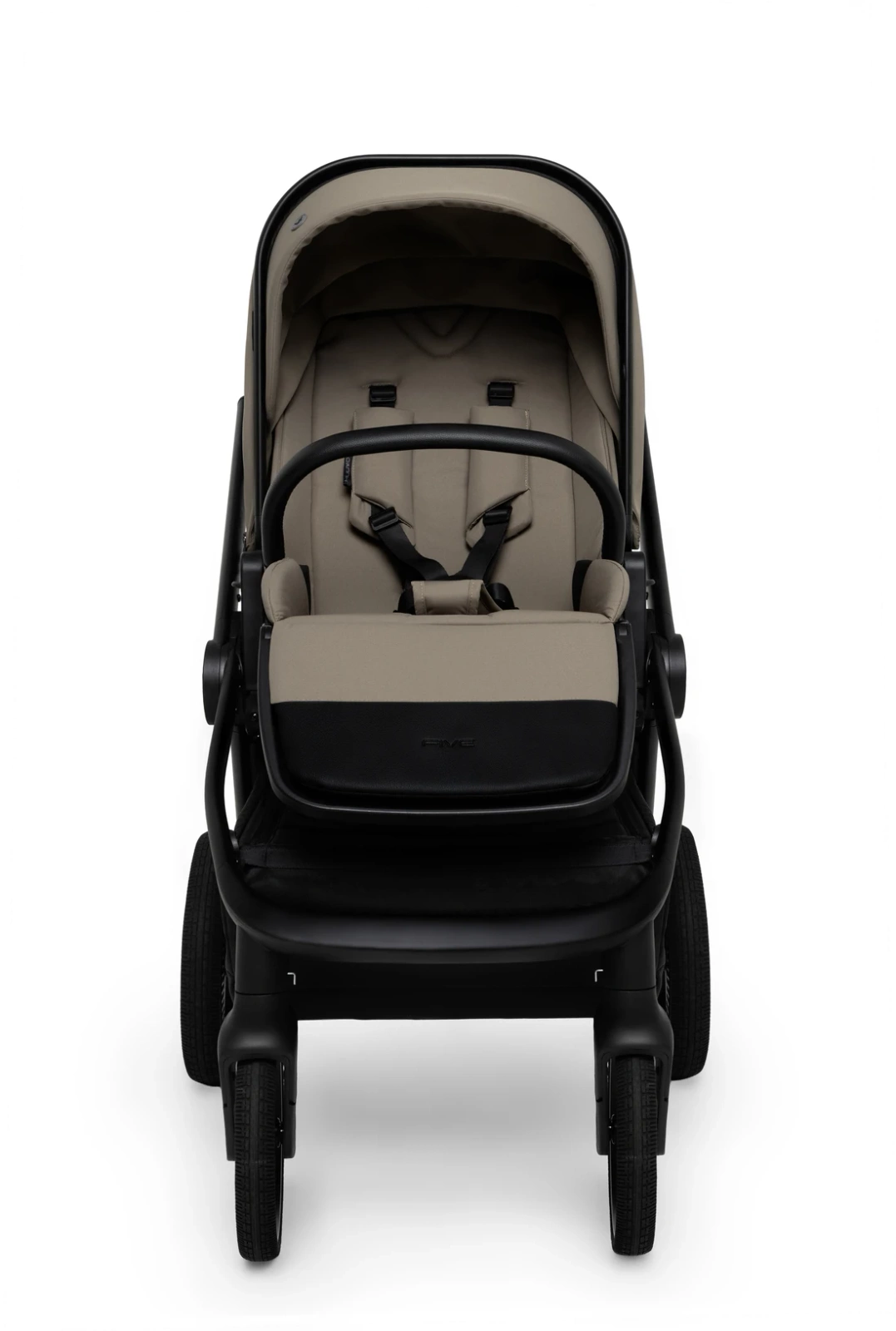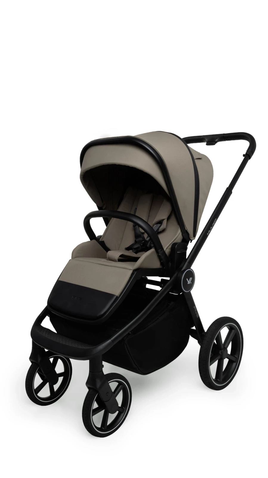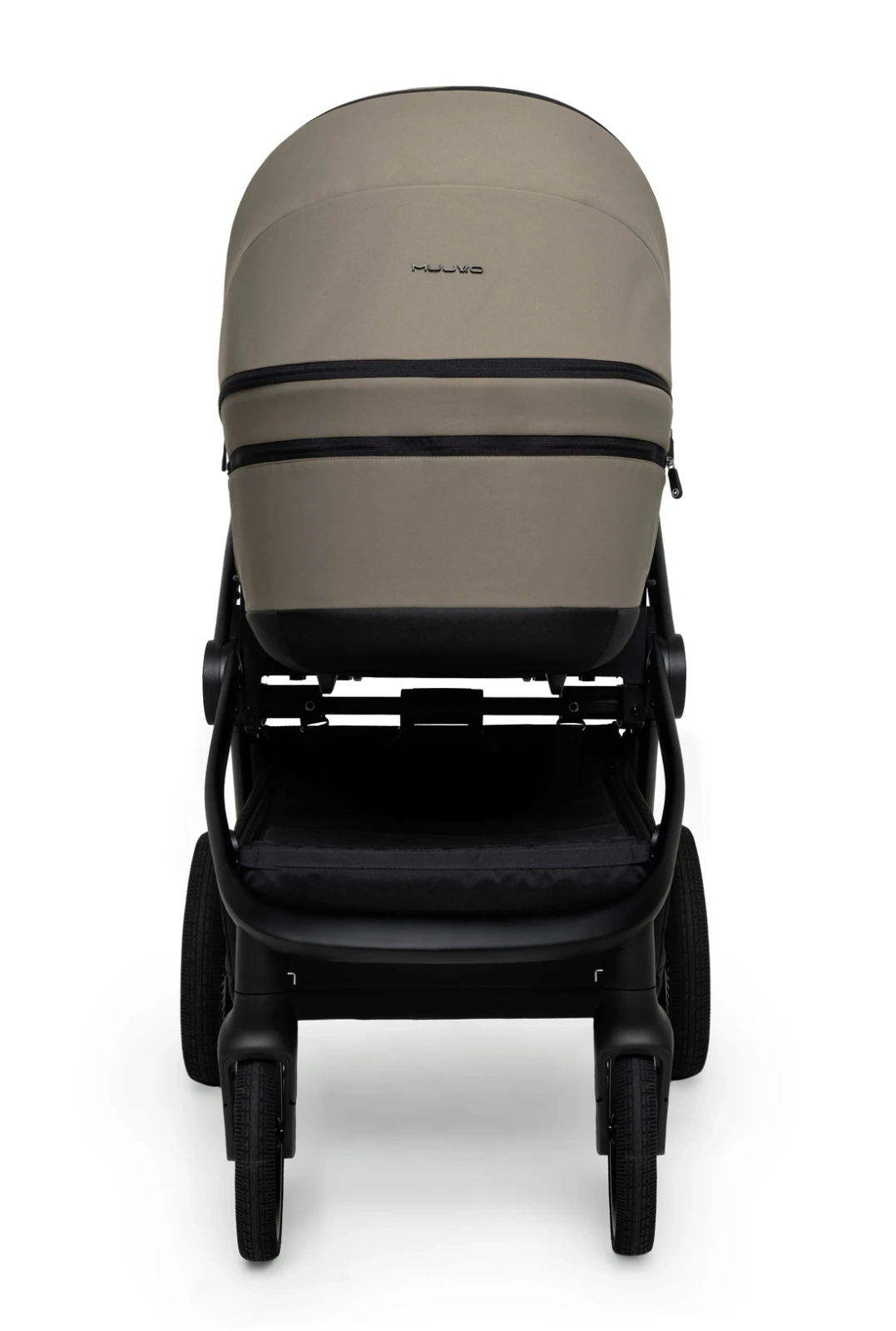 MUUVO FIVE wyróżnia się także nową konstrukcją piankowych kół z dodatkową amortyzacją, które gwarantują płynną i stabilną jazdę niezależnie od nawierzchni. To wózek, który łączy styl, funkcjonalność i wygodę – idealny dla rodziców ceniących nowoczesne rozwiązania.