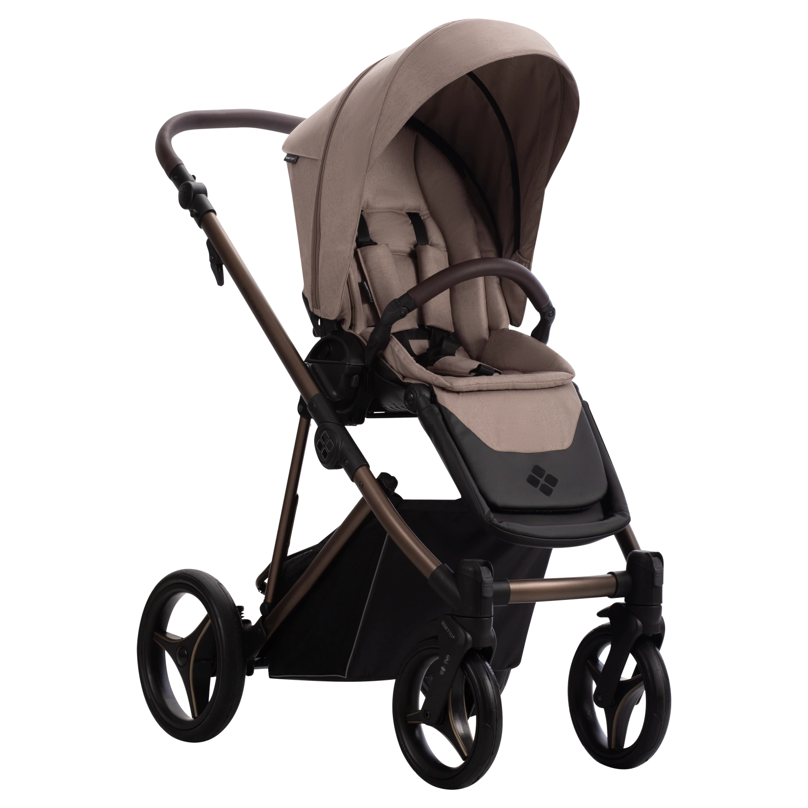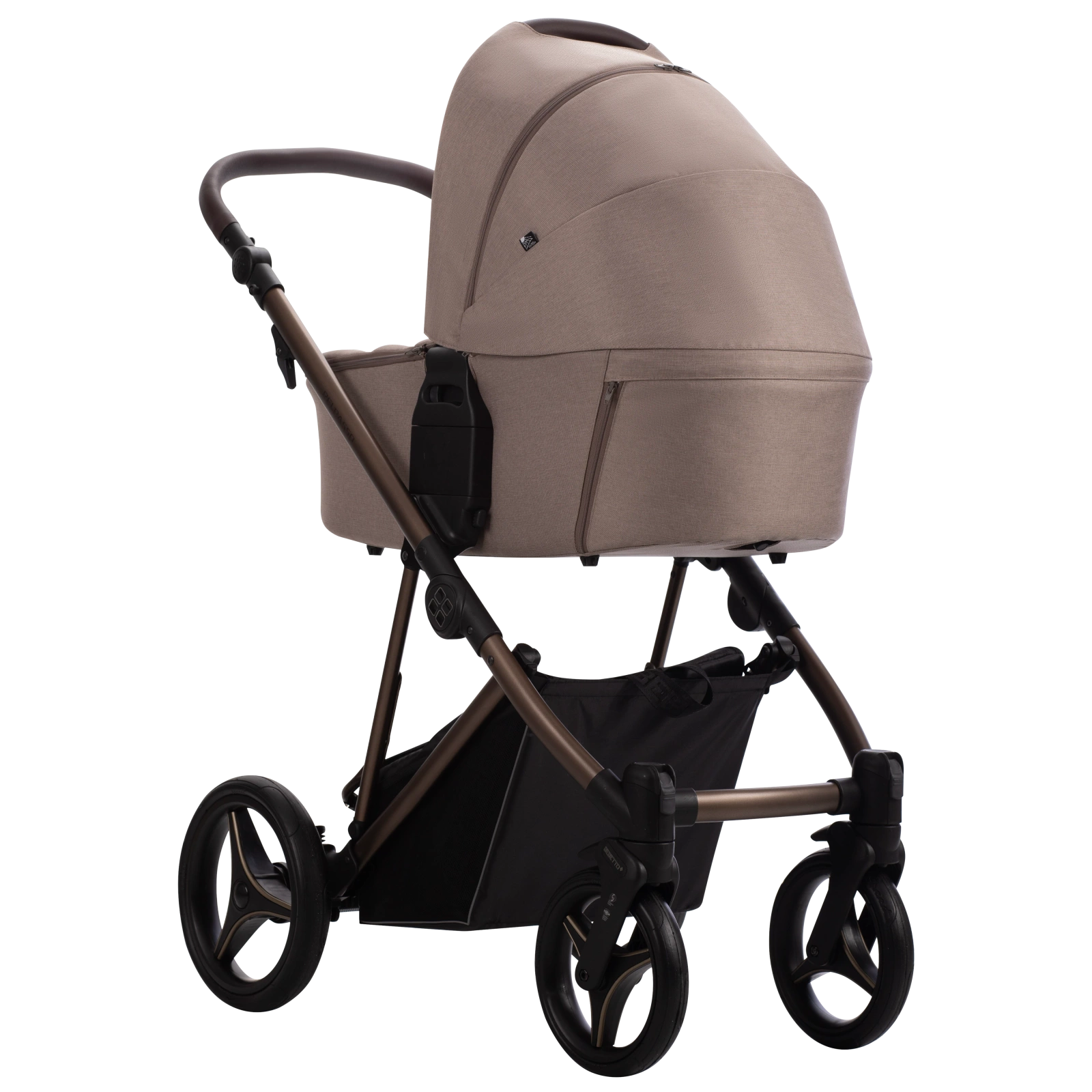 Detal spacerówki z logiem Eva Minge Spacerówka Flavio x Eva Minge - widok z przodu Stelaż wózka Flavio x Eva Minge