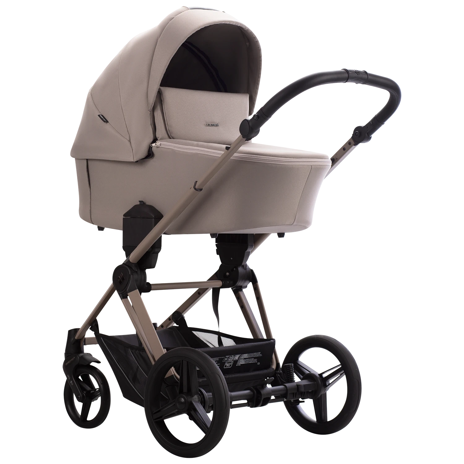Gondola w wózku dziecięcym Nuvio to kwintesencja lekkości i komfortu od pierwszych dni życia. Wersja głęboka całego zestawu waży zaledwie około 12 kg, co czyni Nuvio jednym z najlżejszych wózków 2w1 w swojej klasie. Gondola została zaprojektowana tak, aby zapewnić dziecku optymalne warunki do odpoczynku i snu – jej wnętrze jest miękkie, przyjemne w dotyku i starannie wykończone. Dno wykonano z nowoczesnego materiału EPP, który doskonale izoluje od chłodu, a jednocześnie jest lekki i niezwykle trwały. Ogromnym atutem Nuvio jest rozbudowany system wentylacji – dwa duże, odkrywane panele siatkowe umieszczone w budce oraz w przedniej części gondoli zapewniają naturalny przepływ powietrza w ciepłe dni. Po ich zamknięciu gondola gwarantuje wysoki komfort termiczny zimą, chroniąc dziecko przed zimnem i wiatrem. Dodatkowy odkrywany panel z przezroczystym okienkiem pozwala rodzicom na stałą kontrolę malucha podczas spaceru. Gondola Nuvio jest również składana na płasko, co znacząco ułatwia jej transport i przechowywanie – to rozwiązanie idealne dla rodzin często podróżujących lub dysponujących ograniczoną przestrzenią w domu czy bagażniku samochodu. Szeroki zakres regulacji budki, możliwy dzięki zastosowaniu aktywnego pałąka, zapewnia wyjątkową wygodę obsługi i jeszcze lepsze dopasowanie do aktualnych warunków pogodowych.