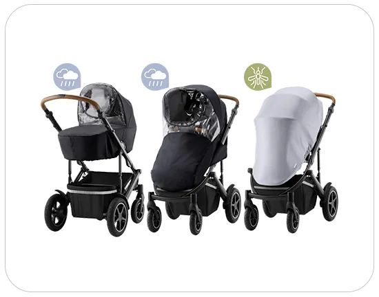 Zestaw pogodowy pozwala chronić Twoje dziecko w każdych warunkach. Zestaw zawiera osłonę przeciwdeszczową na wózek Smile 5Z oraz osłonę na gondolę Smile 5Z. Dzięki temu Twój maluch jest zawsze chroniony przed wiatrem i deszczem, bez względu na to czy podróżuje w wózku spacerowym, czy w gondoli. W zestawie znajduje się też moskitiera, która pasuje zarówno do wózka spacerowego, jak i gondoli, zapewniając ochronę Twojemu dziecku przed latającymi owadami.